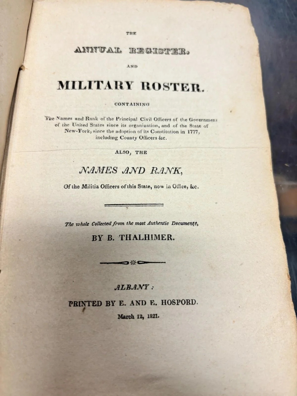 Published 1821 by E and E Hosford, Albany.