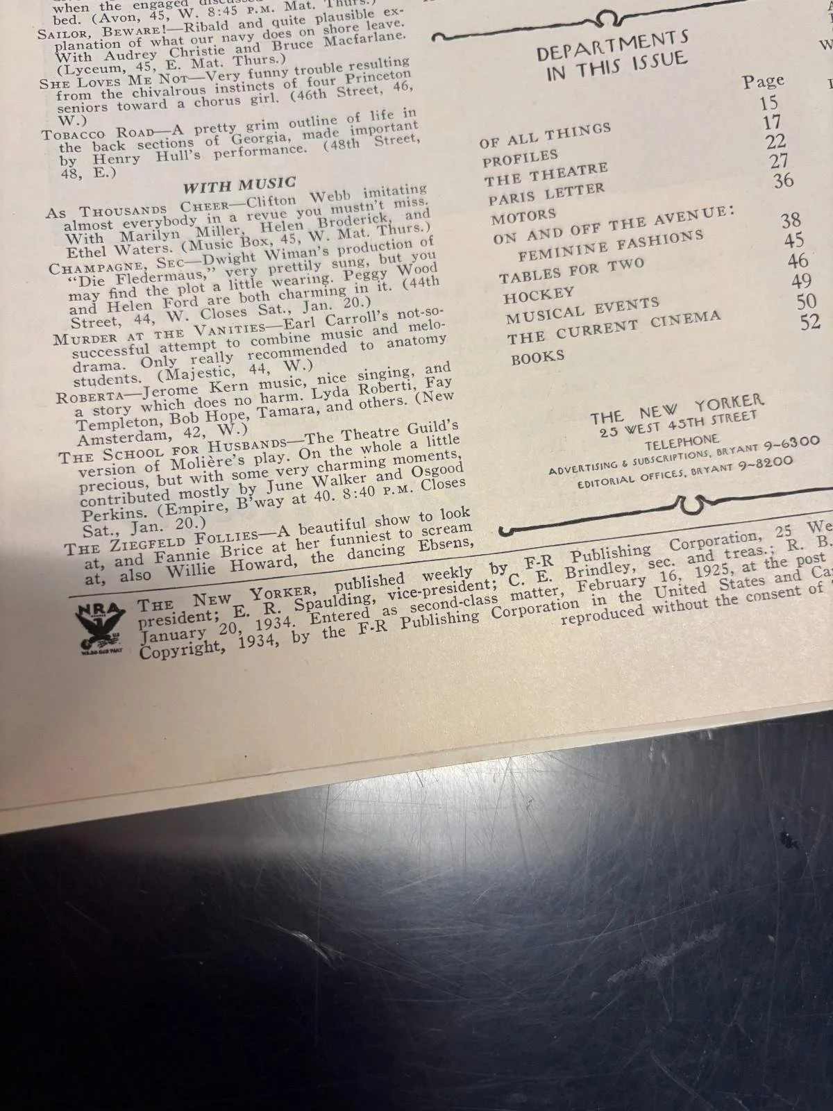 Original Complete THE NEW YORKER - January 20, 1934 ADOLPH K KRONENGOLD cover