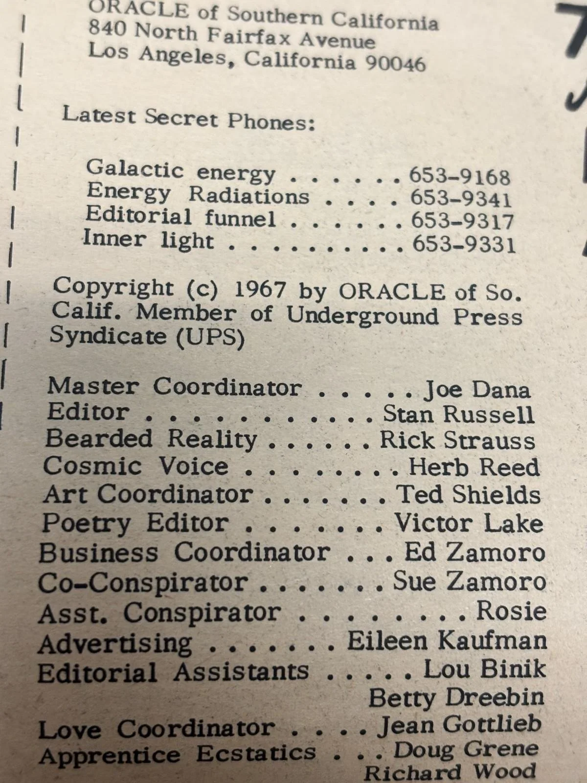 Southern California Oracle #7 Nov 1967 Psychedelica