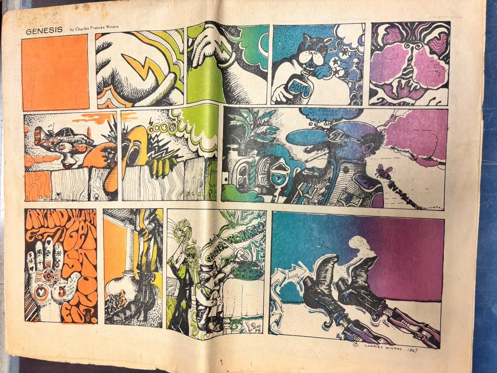 [Hippie Counterculture] The Southern California Oracle, the rare Hippie publication focusing on psychedelics, free love, mysticism, legal aid, and commune living. This newspaper archive comprises three original issues (No. 5, September 1967; No. 6, October 1967; No. 7, November 1967) published in Los Angeles during the apex of the West Coast counterculture. Each issue measures approximately 11 x 15 in. and is 24 or 32 pages in length. This visually electrifying archive contains full-color psychedelic artwork, interviews with key figures of the hippie movement, and exploratory prose and poetry that embodied the spiritual, sexual, and political revolution underway in 1960s America. Modeled on the San Francisco Oracle (1966–68), its Southern California counterpart quickly became a touchstone for the Los Angeles psychedelic community and a conduit for its evolving mystical ethos.